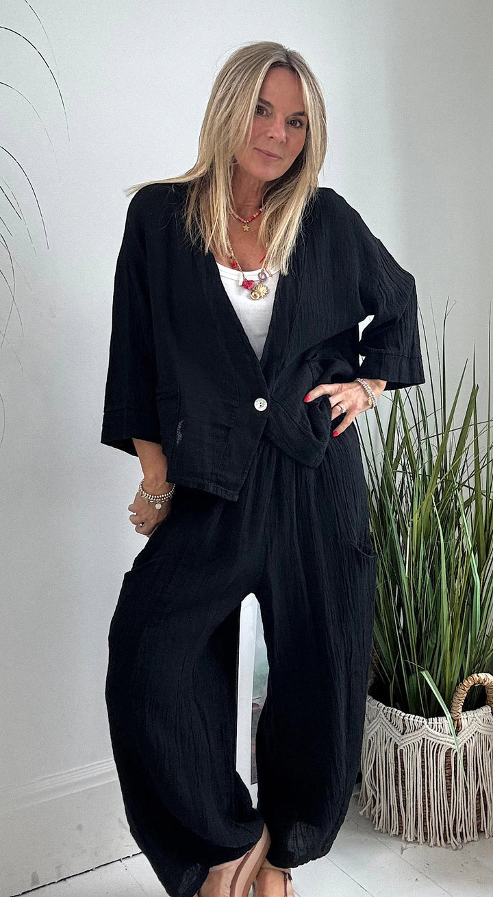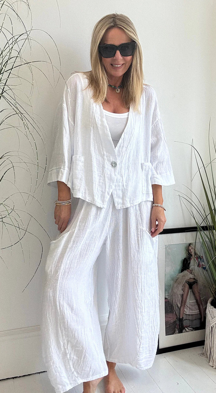 - Fabric: Natural linen + cotton blend, light and breathable