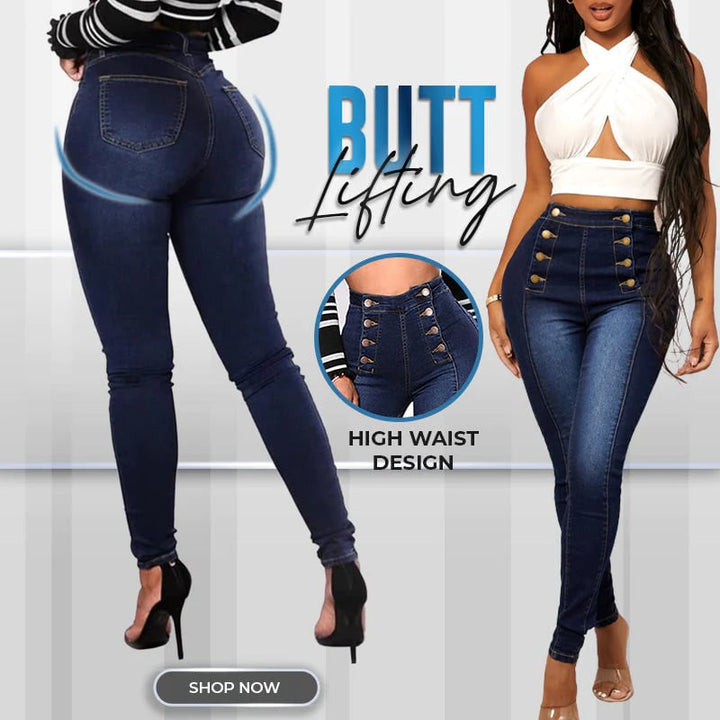šŸ’„Double Breasted High Waist Skinny Jeans