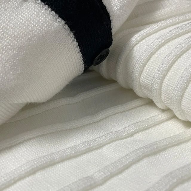 The neckline, button-front closure, and sleeve hems have a contrast piping for a pop of color against the beautiful ivory hue.