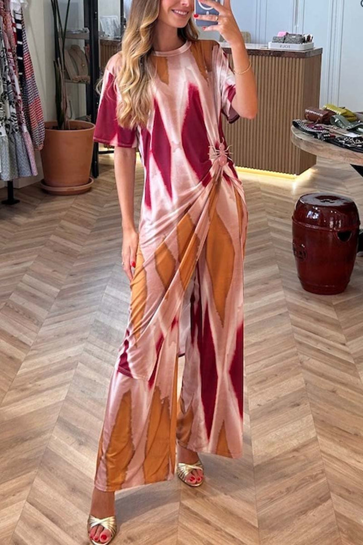 Women's casual tie-dye slit tops and pants two-piece set